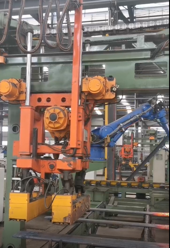 汽車板簧端部加工自動化改造 ---戈思威機器人幫助常德飛橋公司開發全自動導向臂短壓延加工線調試中